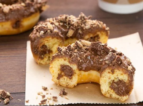 Un beignet à la levure léger et moelleux trempé dans de la tartinade KITKAT® et saupoudré de KITKAT® broyé.