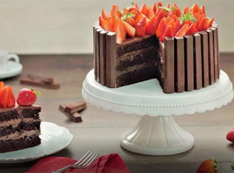 8Décorer avec les MINI DOIGTS DE CHOCOLAT AU LAIT KITKAT® tout autour du gâteau.